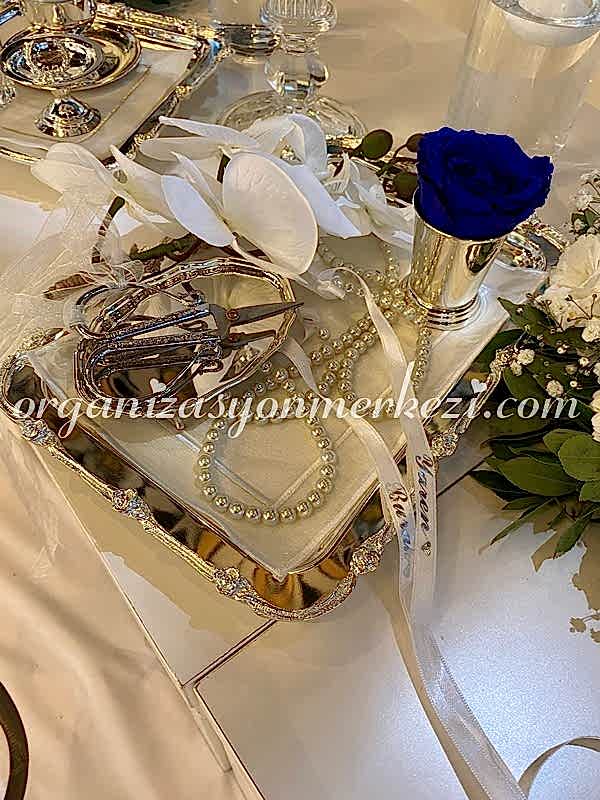 Nişan Organizasyonu Peçete Bileziği: Masa üzerinde şık bir bütünlük sağlayacak peçete bileziği tarafımızdan hayata geçirilmektedir.