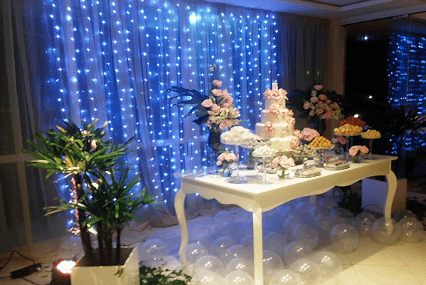 Nişan Organizasyonu Kokteyl Masası: Kokteyl Organizasyonu için üzeri kumaş süsleme yapılmış kokteyl masaları kullanılmaktadır. Kokteyl Masası Kirala- Süslenmiş Kokteyl Masası